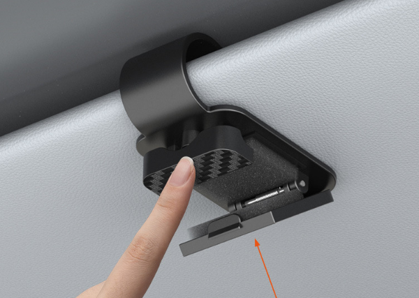 Der Halter wird einfach an der Sonnenblende befestigt– ganz ohne Werkzeug.